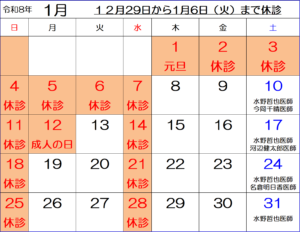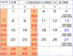 2025年12月29日(月)~2026年1月3日(土)まで休診いたします。